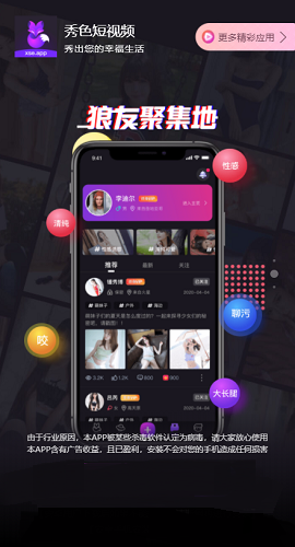 秀色短视频是一款非常好用的短视频软件,这里的短视频资源非常的丰富,而且都是当下最火爆的,而且你还可以在这里观看各种各样的短视频资源,所有的短视频资源全部都是高清的,在这里看视频非常的流畅,不会出现任何的卡顿现象,给大家一个非常良好的观看体验。