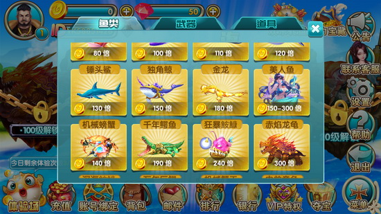 满贯捕鱼游戏特色: